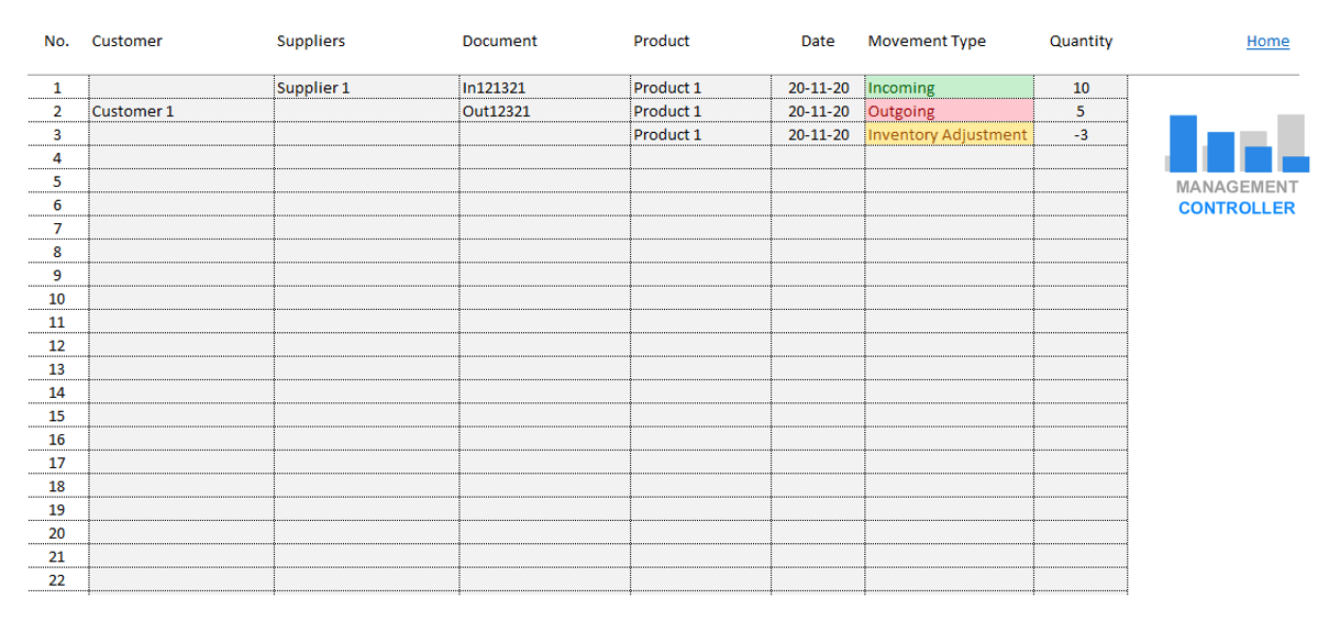 From there, every incoming, outgoing, or adjustment movement will update your inventory dynamically.